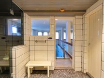 Varustelu: suihku x 2, lattialämmitys. Pesutilan vieressä allasosastolla poreamme.