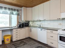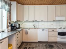 - Jääkaappi, pakastinkaappi, liesi/uuni, liesituuletin, astianpesukone. Tila ruokapöydälle.
