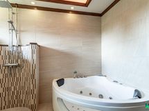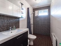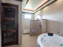 - Kylpyhuone: poreallas, sadesuihku, wc-istuin, lattialämmitys, kiinteät valaisimet, puusauna, tilassa kaiuttimet, kph/wc: allaskaappi, peilikaappi, suihku, lattialämmitys