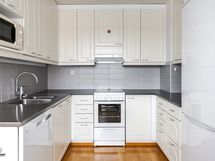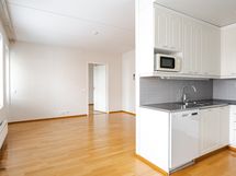 - Keittiön varusteet: Jääkaappipakastin. Hyvin kaapistotilaa ja tila keittiön pöydälle. Valoisa. Lattiassa parketti.