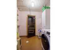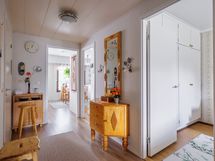 Lattia: Keittiössä: parketti. Pesutiloissa: muovi. Erillisessä WC:ssä: muovi. Olohuoneessa: laminaatti. Makuuhuoneessa: laminaatti. Saunassa: muovi. Seinät: Keittiössä: maalattu, tapetti. Pesutiloissa: kaakeli. Olohuoneessa: tapetti. Makuuhuoneessa: tapetti. Saunassa: puu.
