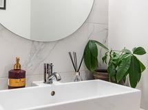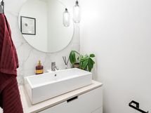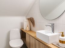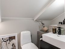 - Pesutilojen varusteet: WC-istuin, suihku (Sadesuihku), lattialämmitys, pesuallas, peili, bidee-suihku, allaskaappi ja seinäkaappi. Pesutilojen kuvaus: Lattiat ja seinät kaakelimaalattu. Erillisten WC:n lukumäärä: 3. Erillisen WC:n varusteet: WC-istuin, bidee-suihku (yläkerran yhdessä wc tilassa), pesuallas, peili ja allaskaappi.