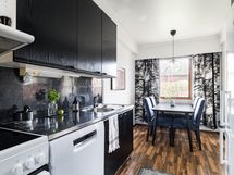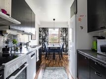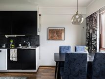 - Keittiön varusteena on jääkaappipakastin, erillisuuni, induktioliesitaso (2021 uusittu), liesituuletin akstiivihiilisuodattimella), astianpesukone (2021 uusittu), kaapistot ja kiinteät valaisimet.