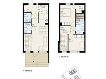 Tarjolla kolmio hyvällä pohjaratkaisulla: alakerrasta löytyy olohuone avokeittiöllä, josta avautuu käynti terassille. Arjen toimivuutta lisäävät erilliset wc- ja kodinhoitotilat. Yläkerrasta löytyy vaatehuone, sauna sekä makuuhuoneet.