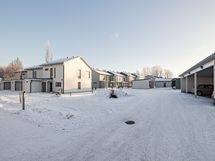 Rakenteilla kaksikerroksisia rivitaloasuntoja Hämeenlinnan keskustan liepeillä Kaurialan kaupunginosassa.