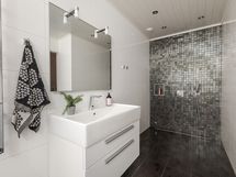 - Pesutilojen kuvaus: 2010 täysin remontoitu , ikkunallinen ja todella tyylikäs pesuhuone / kodinhoitohuone yhdistelmä. Sauna poistettu remontin yhteydessä. Sadesuihku. Yläkerrassa myös wc:ssä suihku. Varustus: pesukoneliitäntä, lattialämmitys, suihku, peili, kylpyhuonekaapisto. Erillisen WC:n kuvaus: Kaksi erillistä Wc:tä . Alakerta remontoitu kokonaan 2012. Yläkerta hiljattain modernisoitu ja kalusteet uusittu . Yläkerrassa myös suihku. Varustus: suihku, bidee-suihku.