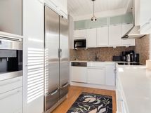 - Liesi: induktio. Työtasot: kivi. Kylmäsäilytys: jääkaappi/pakastin, viinikaappi. Varustus: mikroaaltouuni, astianpesukone, kiinteät valaisimet, liesituuletin / hormi. Täysin uusittu , valkoinen A la Carte keittiö 2008. Valkoiset kivitasot. Miele kodinkoneet. Integroitu kahvinkeitin. Festivo- kylmiö. Viinikaappi. Keittiöstä kiva päätyikkuna