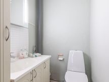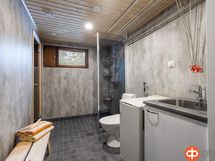 - Sauna, puukiuas, kylpyhuone myös wc-istuin, erillinen wc, suihku, suihkuseinä, peilikaappi, lattialämmitys psh + sauna vesikiertoinen lattialämmitys, kiinteät valaisimet.