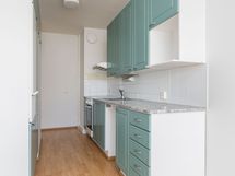 - Keittiön varustus: jääkaappi, keraaminen liesi uunilla, liesituuletin, kaapistot ja työtasot.