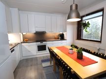 - Keittiön varusteet: Jääkaappipakastin, liesi, liesituuletin, astianpesukone (v. 2020) ja erillisuuni. Liesi: Induktioliesi. Keittiö uusittu 2022.