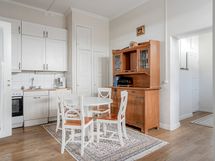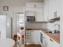 - Keittiön varusteet: Jääkaappipakastin, liesituuletin, astianpesukone ja liesi. Liesi: Keraaminen liesi. Työtason materiaali: Laminaatti.