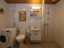 - Pesutilojen varusteet: Suihku, wc-istuin, peilikaappi, pesuallas, allaskaappi, pesukoneliitäntä ja lattialämmitys. Erillisten WC:n lukumäärä: 2. Erillisen WC:n kuvaus: 1. krs wc-istuin pesuhuoneen yhteydessä, 2 krs. erillinen wc, jossa wc-istuin, bideesuihku, peilikaappi ja pesuallas. Lattia muovimatto, seinät maalattu.