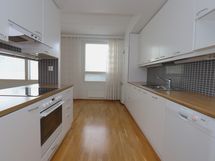 - Keittiön varusteet: Jääkaappipakastin, liesi (Keraaminen liesitaso), erillisuuni ja astianpesukone. Keittiössä hyvin laskutilaa, ruokapöydälle paikka.