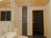 - Pesutilojen varusteet: WC-istuin, suihku, pesuallas, peilikaappi, bidee-suihku, pesukoneliitäntä ja lattialämmitys. Erillisten WC:n lukumäärä: 2. Erillisen WC:n varusteet: WC-istuin, peilikaappi, pesuallas ja bidee-suihku. Erillisen WC:n kuvaus: Erillinen wc ja toinen wc pesutilojen yhteydessä.
