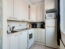 - Liesi: sähköliesi. Työtasot: laminaatti. Kylmäsäilytys: jääkaappi/pakastin. Keittiö uusittu vaaleaksi 2003. Jenkkikaappi