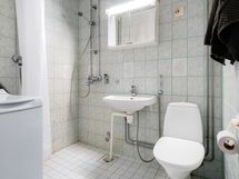 - Pesutilojen kuvaus: Pesuhuone laatoitettu 2003, amme poistettu. Varustus: wc-istuin, suihku, peilikaappi.