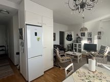 - Tilaa isolle ruokapöydälle, Paljon kaappitilaa, Suuri tiskipöytä, Laminaattitasot, Astianpesukone, Sähköliesi, Liesituuletin, Jää-pakastinkaappi