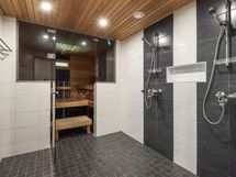 Varustus: lattialämmitys, suihku (2 suihkua), kiinteät valaisimet.