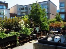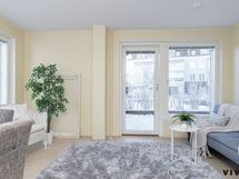 - Tilava terassi 32 m2 aukeaa itään, sisäpihan suuntaan. Lukittava portti.