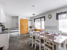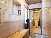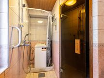 - Kylpyhuone; suihku, ikkuna, lattialämmitys. Erillinen wc; wc-istuin, allaskaappi, pide, seinähylly, peilikaappi. Sauna; puukiuas, paneloitu