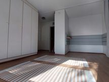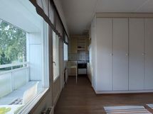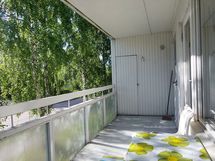 Yksiössä on koko asunnon levyinen iso parveke, harvoin tarjolla.