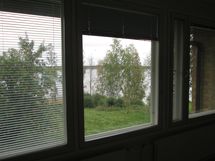 Maaherran talo. Kaupungin keskustassa ja järvenrannalla.