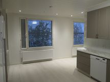 Olohuone, keittiö, 4 makuuhuonetta, kodinhoito huone, tilavat aulat molemmisaas kerroksissa.