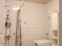 Suihku, Pesukonevalmius, Allaskaappi, Peilikaappi, Laattaseinä, Laattalattia, Avattava ikkuna, Lattialämmitys