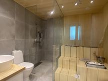 - Pesutilojen kuvaus: Täysin uusittu 2020, avara ja tyylikäs. Varustus: suihkuseinä, lattialämmitys, wc-istuin, suihku, kiinteät valaisimet.