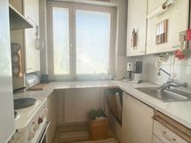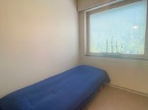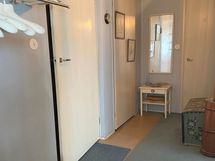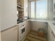 - Ikkunallisessa keittokomerossa sähköliesi, liesituuletin, jääkaappi, pesuallas, kaapistot.