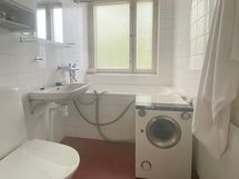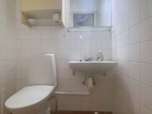 - Pesutilojen kuvaus: Ikkunallisessa kylpyhuoneessa wc-istuin, pesuallas, suihku, amme, pk-liitäntä. Erillisen WC:n kuvaus: Erillinen wc-tila eteisen yhteydessä; wc-istuin, pesuallas, peili, seinäkaappi.