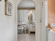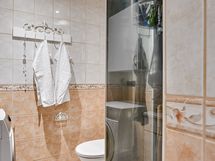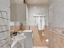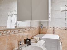 - Pesutilojen varusteet: WC-istuin, pesukoneliitäntä, suihku, suihkukaappi, lattialämmitys, bidee-suihku, pesuallas, allaskaappi, peili ja kaapistot (uusittu 2020). Pesutilojen kuvaus: Kylpyhuoneessa poistoilmapuhallin, mikä lähtee päälle automaattisesti suihku jälkeen.