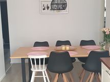 - Keraaminen liesi, Laminaattitasot, Astianpesukone, Liesituuletin, Jää-pakastinkaappi