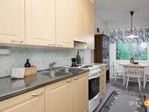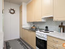 - Jääkaappi, sähköliesi, liesituuletin, kaapistot, kiinteät valaisimet.