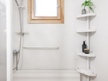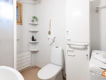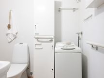 - Kylpyhuone, suihku, suihkuseinä, peilikaappi, allaskaappi, pesukoneliitäntä, kiinteät valaisimet. Kylpyhuone on alkuperäisessä kunnossa.