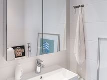 - Pesutilojen kuvaus: pyyhekuivain. Varustus: suihkuseinä, pesukoneliitäntä, lattialämmitys, wc-istuin, suihku, peilikaappi, kiinteät valaisimet. Varustus: peilikaappi, bidee-suihku.