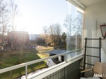 - Puistonäkymät. Parveke sisäpihalle, etelään.