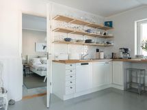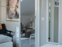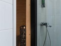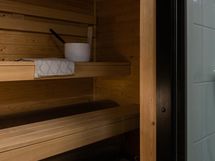 - Sauna, sähkökiuas, kylpyhuone, suihku, suihkuseinä, peilikaappi, allaskaappi, pesukoneliitäntä, lattialämmitys kylpyhuoneessa, kiinteät valaisimet.