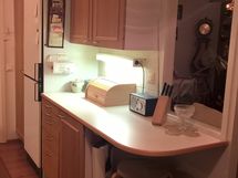 Paljon kaappitilaa, Laminaattitasot, Sähköliesi, Jää-pakastinkaappi