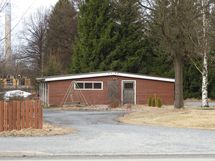 Autotalliin on asennettu hyllyt. Hyllyt poistamalla talliin mahtuu auto.