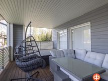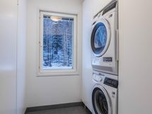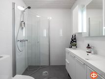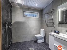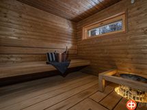 Sauna, sähkökiuas, kylpyhuone 2x, suihku, poreallas upotettu terassi, peilit, allaskaappi, pesukoneliitäntä khh, lattialämmitys kaikkialla, kiinteät valaisimet.