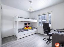 Keittiö: lattia vinyyllankkua, seinät maalattu. Olohuone: lattia vinyyllankkua, seinät maalattu. Makuuhuone 1: lattia vinyyllankkua, seinät maalattu. Makuuhuone 2: lattia vinyyllankkua, seinät maalattu. Makuuhuone 3: lattia vinyyllankkua, seinät maalattu. Kodinhoitohuone: lattiassa laattaa, seinät maalattu. Sauna: lattiassa laattaa, seinät paneloitu. Kylpyhuone: lattiassa ja seinissä laattaa. Eteinen: lattiassa laattaa. Kylpyhuone 2: lattiassa ja seinissä laattaa.