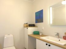 - Pesutilojen varusteet: WC-istuin, suihku, peili, lattialämmitys, allaskaappi, pesuallas ja bidee-suihku. Erillisten WC:n lukumäärä: 2. Erillisen WC:n varusteet: Lattialämmitys, peili, allaskaappi, bidee-suihku ja pesuallas.