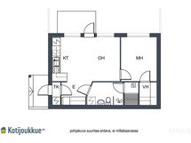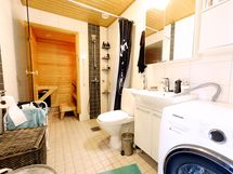 Varustus: pesukoneliitäntä, lattialämmitys, wc-istuin, suihku, peilikaappi.