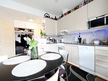 Liesi: sähköliesi. Työtasot: laminaatti. Kylmäsäilytys: jääkaappi/pakastin. Varustus: liesituuletin, astianpesukone.