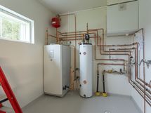 Vesikiertoinen lattialämmitys / aurinkopaneelit / takka. Asuinrakennuksessa ilmavesilämpöpumppu. Autotallissa ja yksiössä ilmalämpöpumppu.