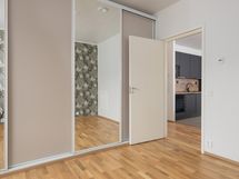 Parkettilattia, seinät maalattu/tapetoitu.