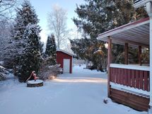 - Perinteinen pihasauna. Puukiuas.
