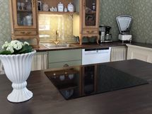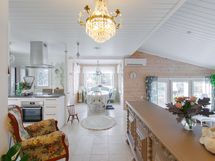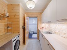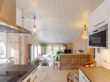 - Keittiön varusteet: Keittiösaareke. Keittiö valmistunut 2020, pintoja päivitetty 2025: Kaapistot , saareke, jossa erillis-kiertoilmauuni, induktioliesi ja liesikupu, jääkaappi, pakastin, mikroaaltouuni, astianpesukone.