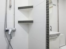 Kylpyhuoneessa ledvalot. WC: Wc-istuin kylpyhuoneen yhteydessä.